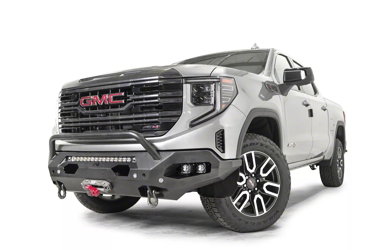 Application. This Fab Fours Matrix Winch Front Bumper with Pre-Runner Guard fits 2022-2026 Sierra 1500 models.