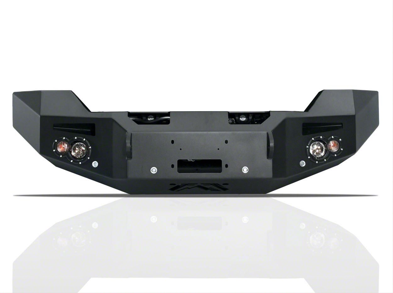 Construction and Appearance. Crafted from heavy-duty steel, this bumper is built to withstand harsh off-road conditions. The matte black powder-coated finish offers excellent resistance against rust, corrosion, and abrasions, ensuring long-lasting durability and a sleek, rugged appearance.