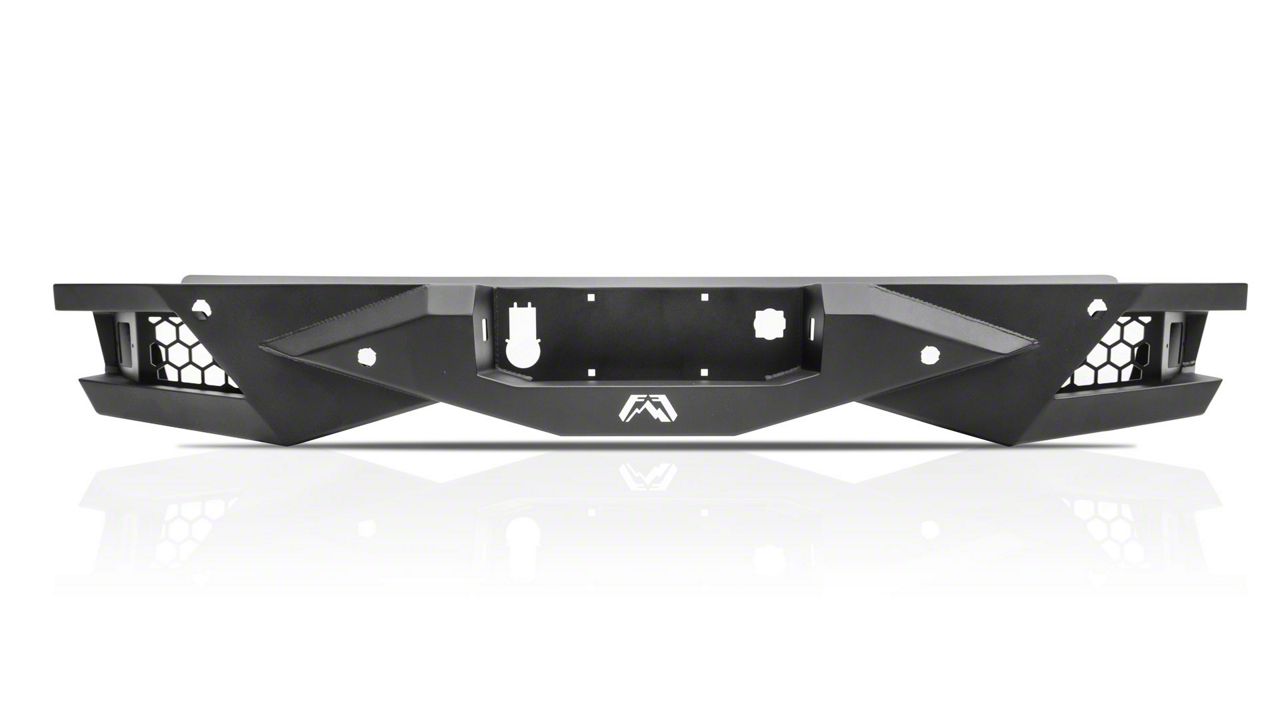 Exceptional Rear Protection. The Fab Fours Vengeance Rear Bumper; Pre-Drilled for Blind Spot Monitor; Matte Black makes your GMC truck even more aggressive than ever. It features remarkable durability and impressive styling that matches the ruggedness of your vehicle. Also, this rear bumper is designed to reuse your vehicle’s factory receiver hitch for simple installation. With this rear bumper, you can traverse rugged terrain with confidence.