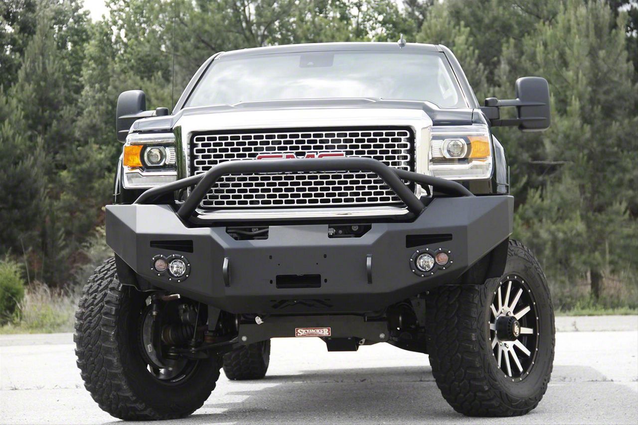 Application. This Fab Fours Premium Heavy Duty Winch Front Bumper with Pre-Runner Guard fits 2015-2019 GMC RAM