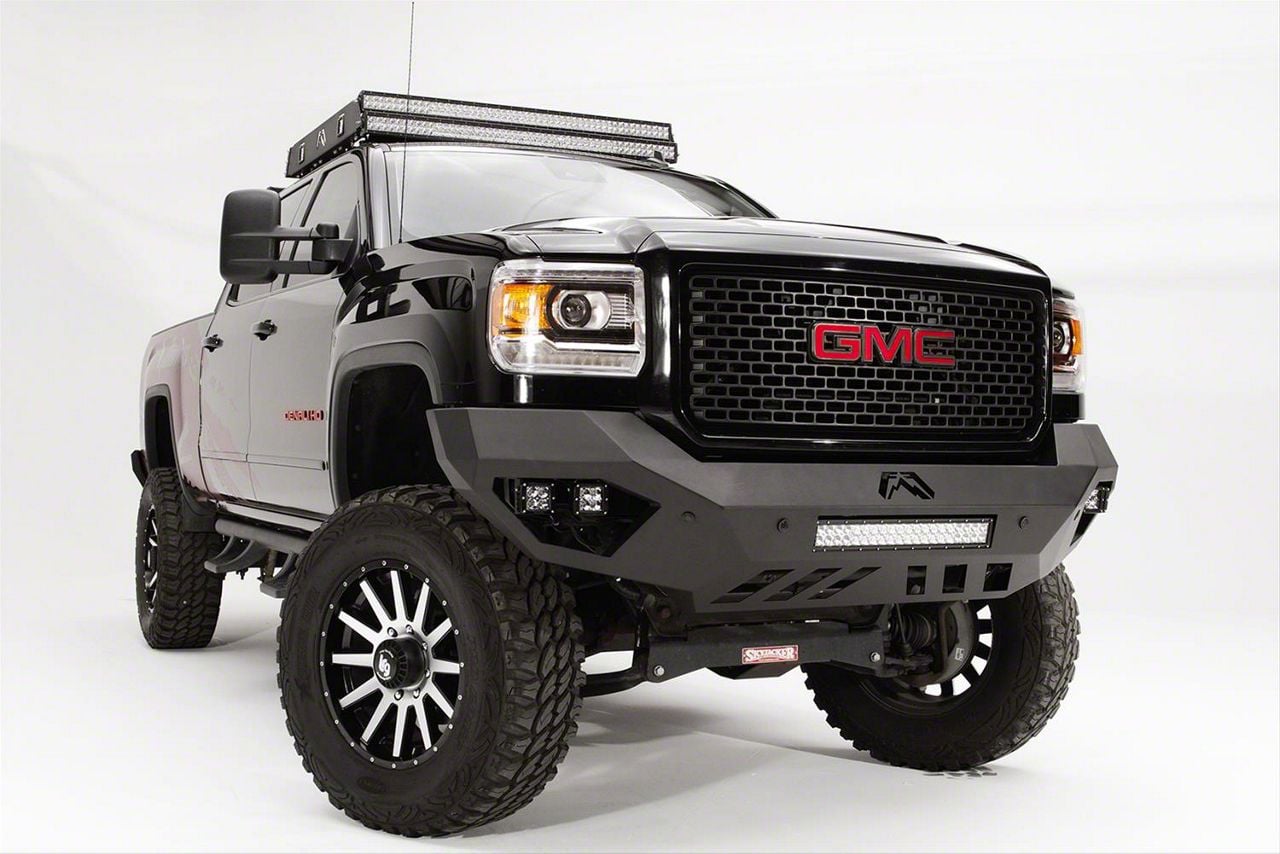 Application. The Fab Fours Vengeance Front Bumper with No Guard; Matte Black fits 2015-2019 Sierra 3500 HD models.
