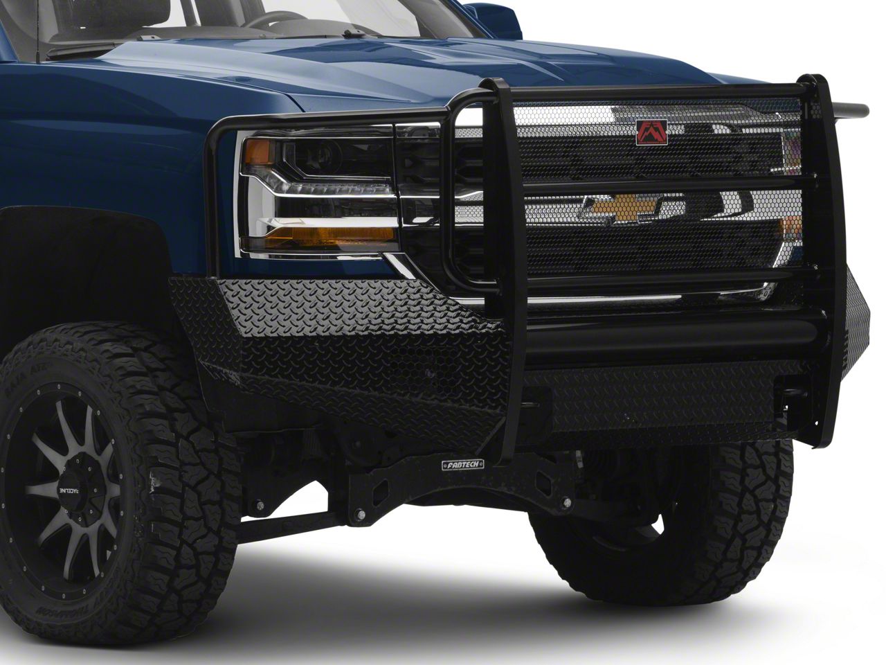 Application. A Fab Fours Black Steel Front Bumper is designed to accurately suit 2016-2018 Silverado 1500s.