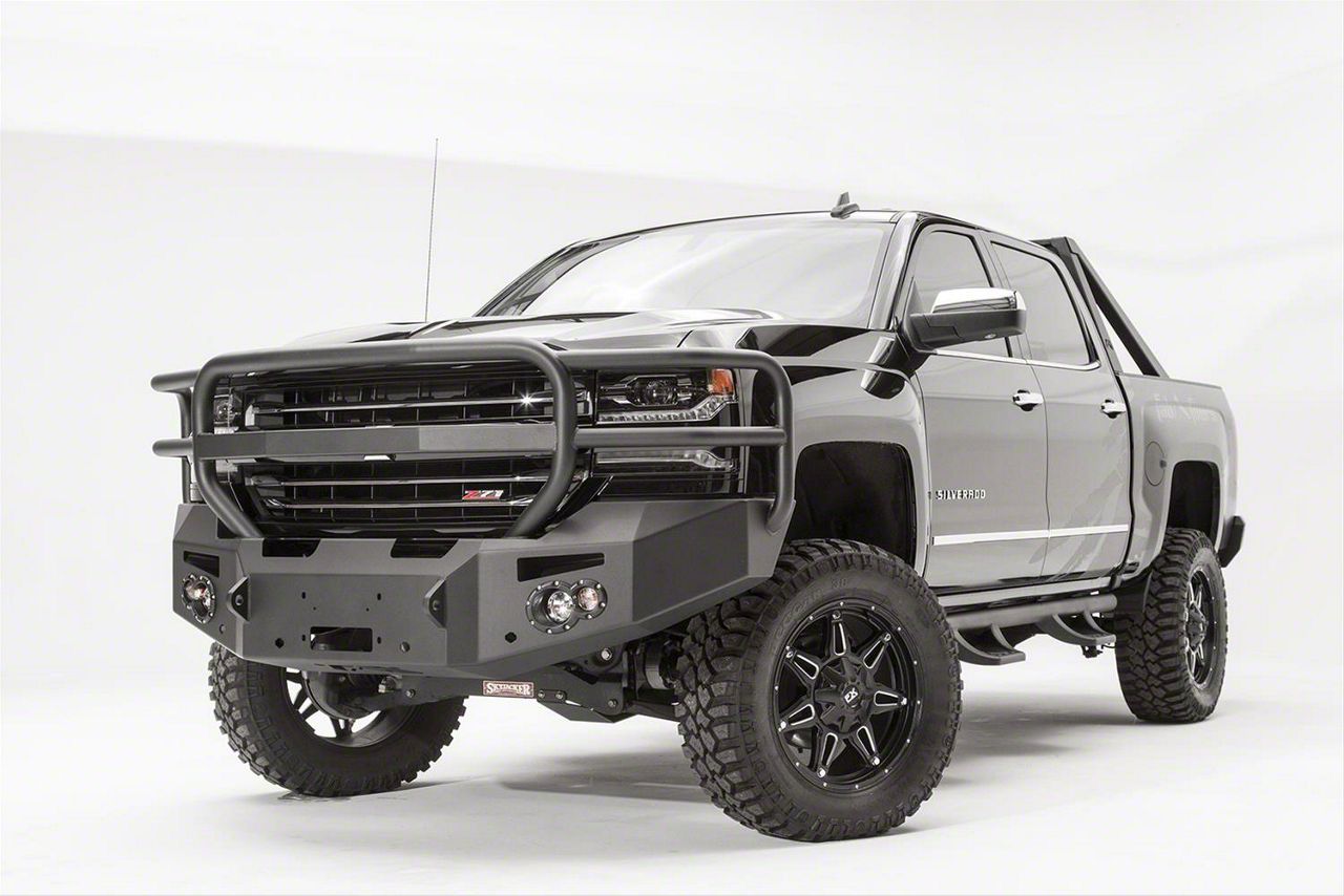 Application. The Fab Fours Premium Winch Front Bumper with Full Guard in Bare Steel fits all 2016 to 2018 Chevrolet Silverado 1500 models.