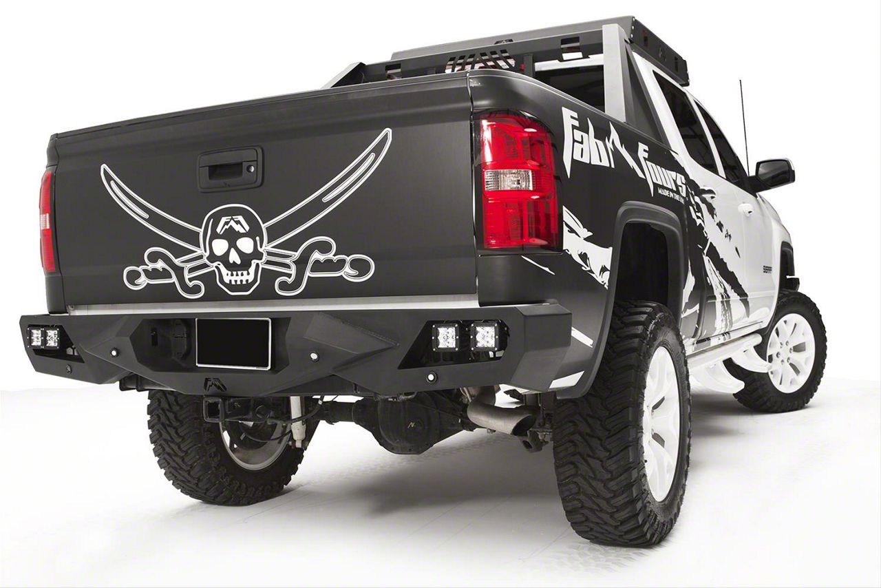 Application. This Fab Fours Vengeance Rear Bumper in Bare Steel works with all models of the 2014-2018 Chevrolet Silverado 1500.