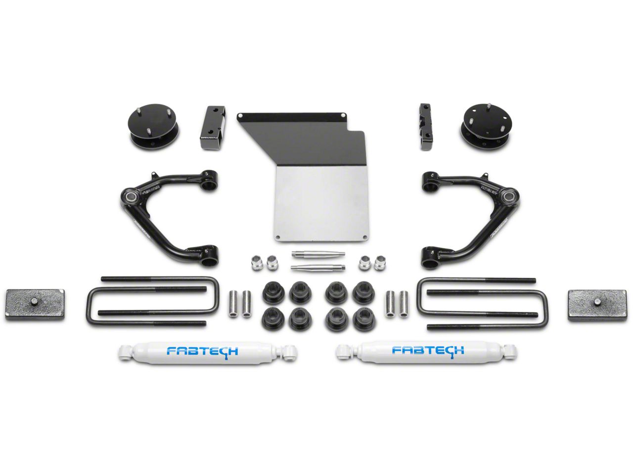 Increased Ground Clearance. Upgrade the system in your 2007-2013 GMC Sierra with the Fabtech 3 in. Uniball Upper Control Arm System w/ Shocks. Four inches of lift is achieved utilizing the factory front Coilover shocks, and the steel spacer system helps retain the stock-quality ride of your front suspension. In the rear, lift is achieved with a 1 1/2” rear lift block and u-bolts. These serve to level the stance of your Sierra, creating a more aggressive appearance while improving its performance.