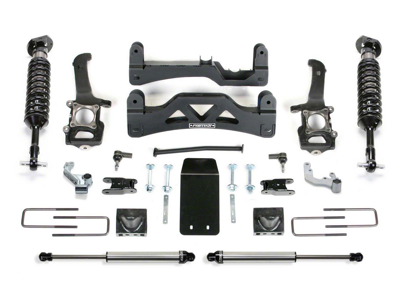 Clean Appearance. Are you looking for a performance lift kit that keeps the tires of your Ford F-150 under the fenders, thereby keeping them as clean as ever? Look no further, install the Fabtech 6 inch Performance GEN II Lift Kit with Dirt Logic SS 2.5 Reservoir Coil-Overs & Rear Dirt Logic SS Shocks on your SuperCrew model and start enjoying the ride. The kit retains factory track width with the front Sway Bar utilizing stock end links and mounting holes to keep leverage on the bar perfect. The kit also relocates the front differential in such a way that vibrations are reduced when driving in 4WD.