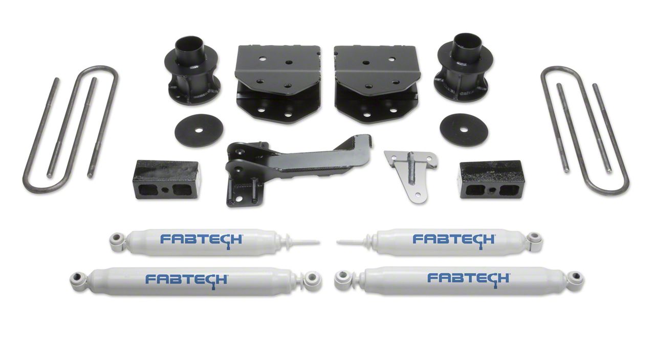 Accommodates Larger Tires. Have you ever dreamed of outfitting your Ford Super Duty with larger wheels and tires? It’s time to make that dream come true with this Fabtech 4-inch Budget Lift System with Performance Shocks. With spring coil spacers and lift blocks, this lift system can provide a 4-inch lift and accommodate tires measuring 35 inches. This added height allows you to easily clear most road obstacles without any problem. This Budget Lift System is also perfect for light off-road use.