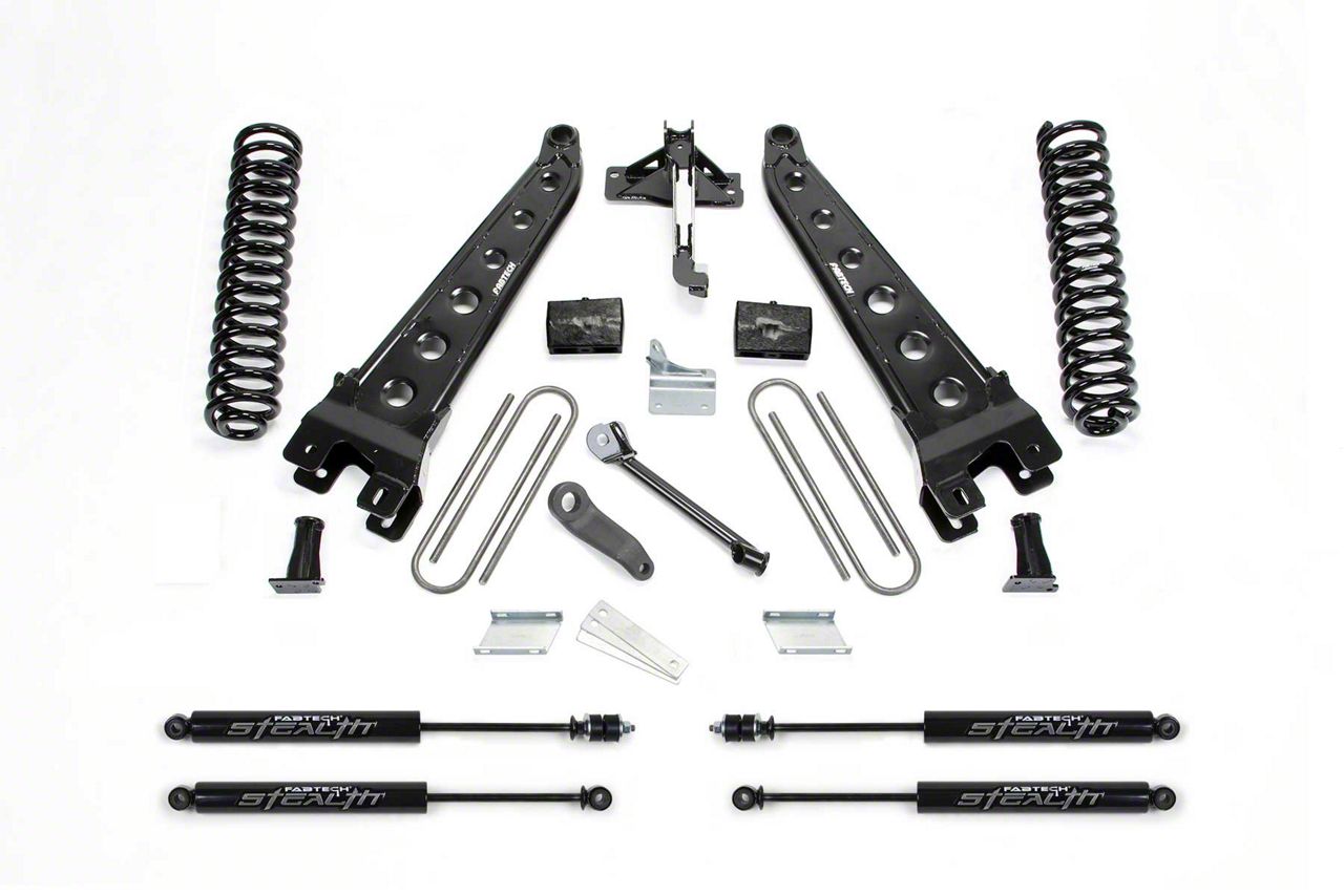 Navigate the Trails With Confidence. Give your Super Duty the capability to navigate tougher trails with confidence. Install the Fabtech 4-Inch Radius Arm Lift System With Stealth Shocks on your Ford Super Duty. This lift kit is designed to add 4 inches of lift front and rear, enabling you to level-up your off-road adventures. Also, this lift kit gives your truck enough clearance to install 35-inch wide tires for that tough off-road look.