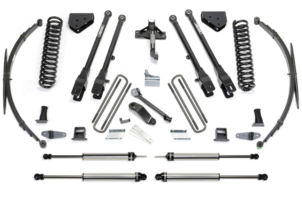 Remarkable Off-Road Capability. Drive your heavy-duty Super Duty with greater stability thanks to the Fabtech 8-inch 4-Link Lift System With Dirt Logic Shocks and Rear Leaf Springs. This remarkable suspension lift system offers you a smoother off-road driving experience by enhancing your truck’s ground clearance and suspension travel. Indeed, no matter how rugged the roads may become, you can enjoy improved ride quality for thousands of miles ahead.
