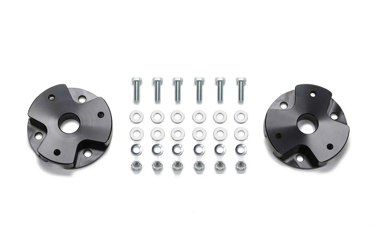 Tough and Reliable. The high-grade strut spacers included in this Fabtech 2-Inch Front Leveling Kit are made from aircraft-grade billet aluminum for superior strength and extra rigidity. These are covered in a protective black powder coat finish for long-lasting corrosion resistance. With these spacers, your vehicle can handle the most rugged terrains with ease and confidence.
