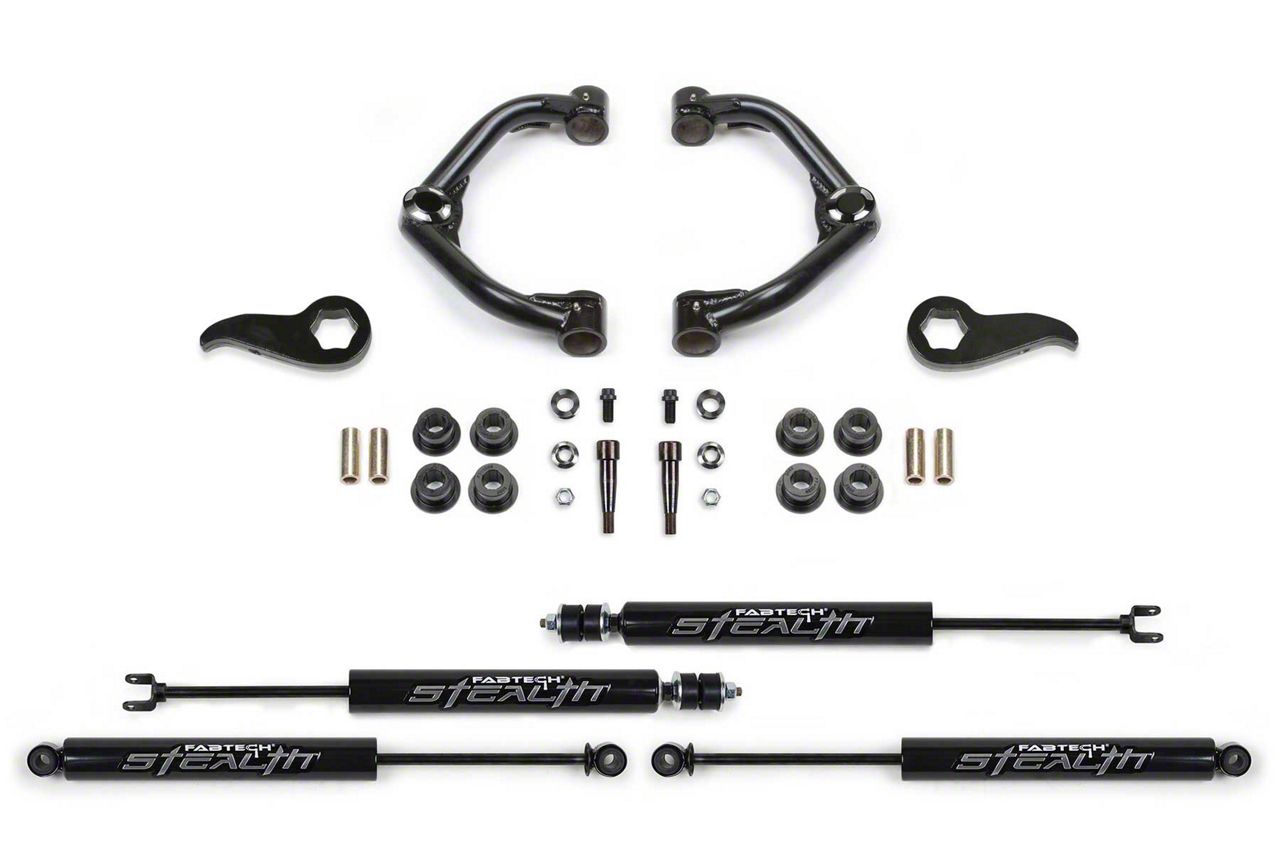 Enhanced Off-Road Capability and Appearance. Transform your 2020-2026 4WD Sierra 2500 HD Double Cab, Crew Cab, whether Double Cab or Crew Cab, with the Fabtech Uniball Upper Control Arm Suspension Lift Kit. This comprehensive kit elevates your truck by 3.5 inches, facilitating the use of up to 34-inch tires for a more aggressive stance and improved off-road performance. The kit includes robust upper control arms, high-performance Stealth shocks, PTFE lined Uniball bearings, and forged torsion bar keys, all designed to enhance your vehicle's suspension for superior handling and durability.