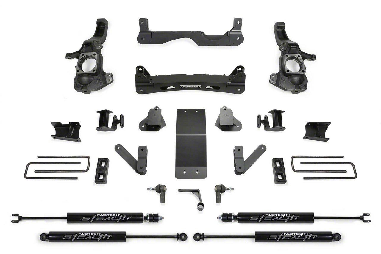 The Versatile Upgrade. If you are thinking of getting a lift for your truck but wants to retain its daily drivability, the Fabtech 4-Inch Suspension Lift Kit with Stealth Shocks is your best option. This suspension lift kit has the ideal amount of lift height at 4 inches for a bold appearance and the versatility to be your daily truck and tackle the trails when you want to. This suspension lift kit includes gas-charged twin tube shocks for front placement that will give you a 4-inch lift height and allows you to run 35-inch tires. These shocks feature closed cell inserts to lessen shock fade during high-speed driving and a high-velocity 9-stage valving for great dampening capabilities. Lift blocks and longer U-bolts are used in the rear suspension to assist in leveling your truck from front to back.