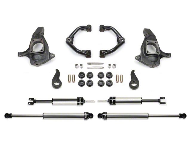 The system will level the stance of the vehicle compared to the factory nose down rake with no change to the rear suspension. For those customers that require a factory nose down appearance an optional 1" rear block kit is available (2500HD Part # FTS21110) (3500HD Part # FTS21111).