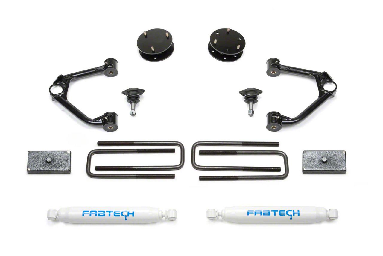 Bolder Off-Road Stance. Give your Silverado 1500 a commanding, off-road stance with customized comfort and optimum handling. Upgrade to the Fabtech 3-Inch Ball Joint Upper Control Arm Lift Kit with Rear Performance Shocks so that you can install larger tire-and-wheel combos that will enable you to tread through various obstacles with ease, confidence, and a bolder sense of adventure. Fabtech utilizes heavy-duty components in this kit including high-strength upper control arms, performance shock absorbers, lift blocks, and U-bolts.