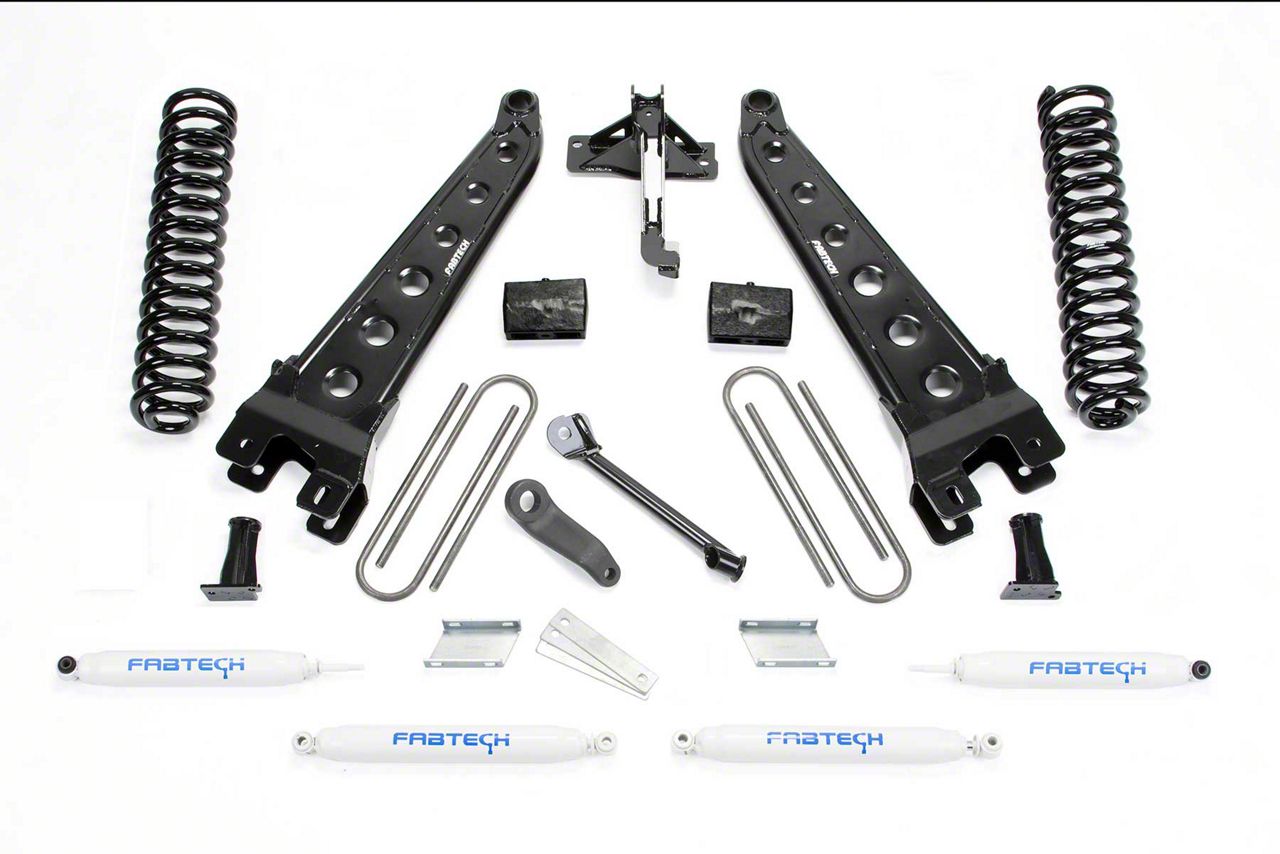 Get the Most From Your Truck. Get the most from your Super Duty with the Fabtech 4-Inch Radius Arm Lift System With Performance Shocks. This suspension lift kit offers a 4-inch increase in overall lift, while keeping an ideal ride quality. This means you can take your truck off-roading through more difficult trails in comfort. Moreover, this extra clearance allows you to install 35-inch tires for that complete off-road look.