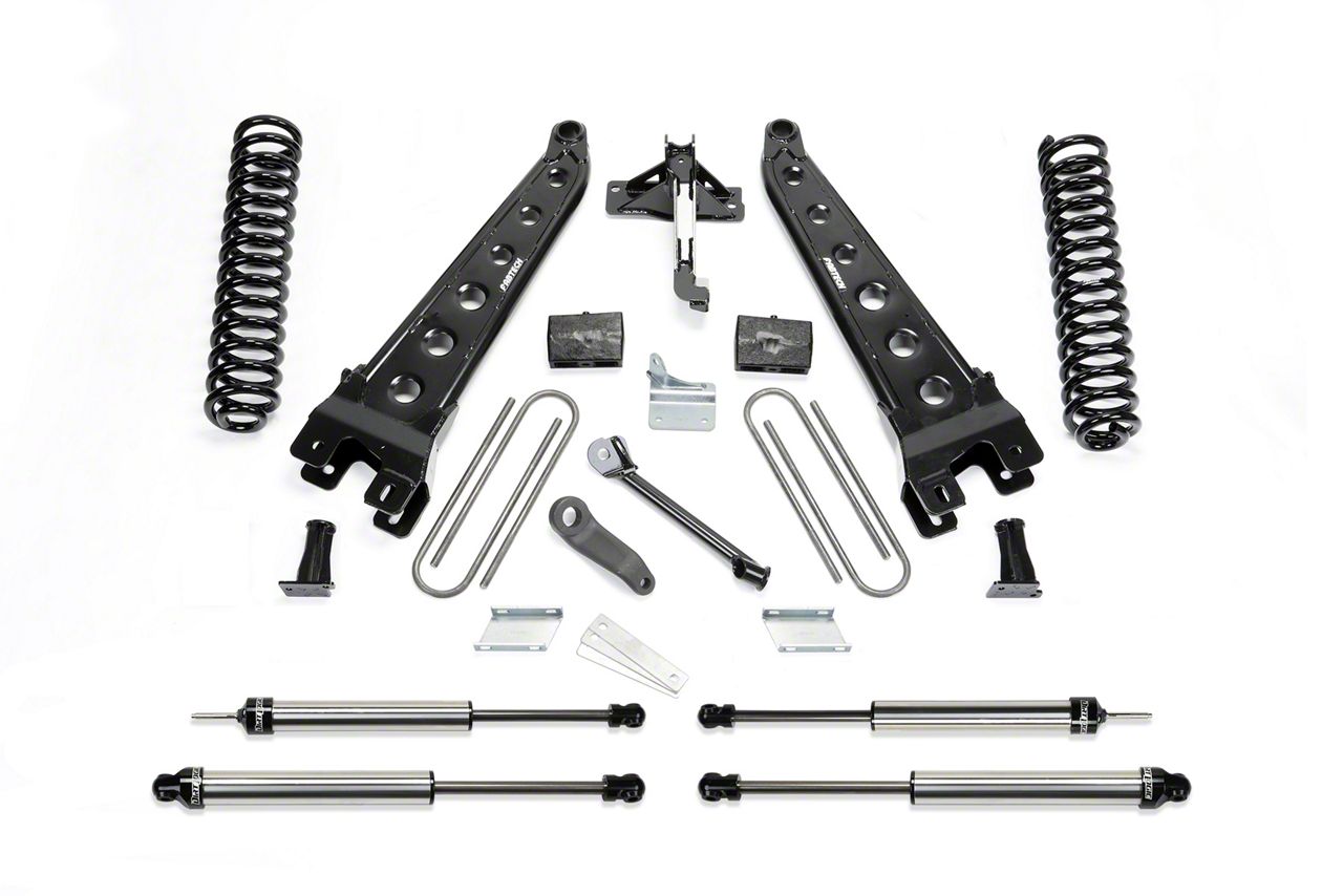 Experience Off-Roading Performance Boosts. If you’re looking for a kit to give your Ford Super Duty a boost in off-road performance, look no further than this Fabtech 6-Inch Radius Arm Lift System With Dirt Logic Shocks. The hefty increase in ground clearance gives your truck a more balanced stance and also gives you room to install larger, more rugged tires. You’ll also experience a smoother ride quality. Apart from the lift height and its benefits, this kit also has other components that boost performance. These include new radius arms for better steering response and a track bar relocation bracket to eliminate any suspension wobbles.