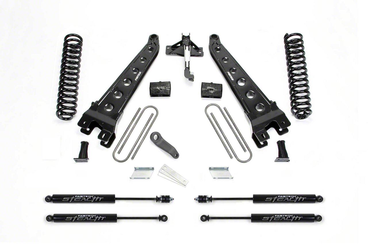 Engineered for Superior Ride. Installing the Fabtech 6-Inch Radius Arm Lift System with Stealth Shocks delivers a superior ride for your Super Duty in addition to providing clearance for larger tires. This kit is also designed and built for excellent control and comfort. And if you’re going through rugged types of terrain, you have the confidence that this lift kit can take a beating.