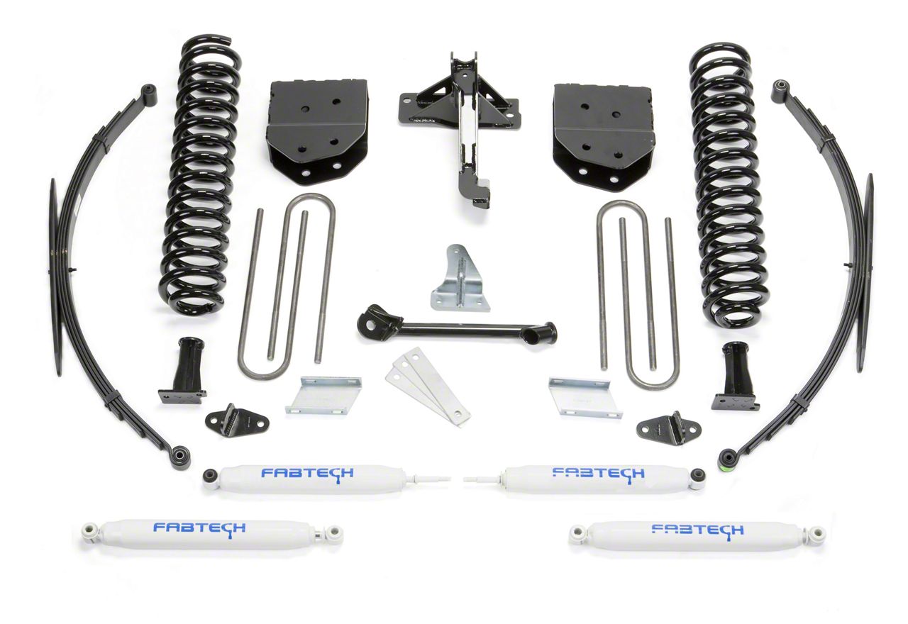 Application. The Fabtech 8-inch Basic Lift System with Performance Shocks & Rear Leaf Springs is exclusively designed to fit all 2011-2016 models of 4WD Ford Super Duty F-250 trucks.