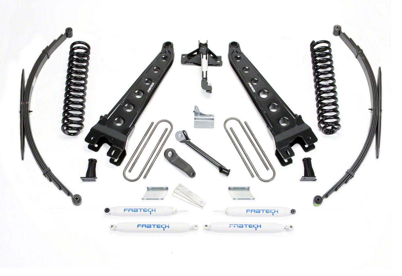 Exceptional Suspension Upgrade. Boost your Super Duty’s off-road performance by using the Fabtech 8-Inch Radius Arm Lift System with Performance Shocks and Rear Leaf Springs. This performance suspension lift package consists of high-quality components, such as the Fabtech radius arm, twin-tube performance shocks, coil springs, rear leaf springs and U-bolt kit, and Pitman arm to deliver enhanced off-road driveability on various terrains.