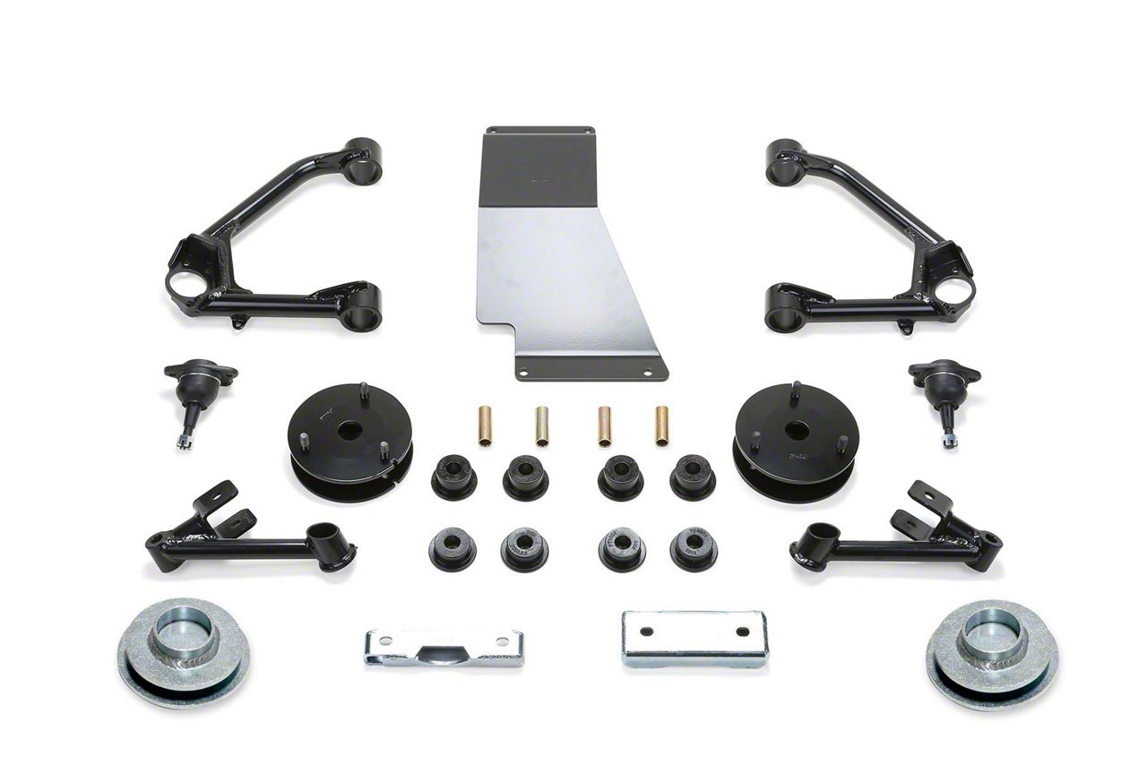 Strong Composition. Crafted from high-quality materials, this suspension lift kit is built to withstand the rigors of off-road adventures. Each component has been meticulously designed and tested to ensure maximum strength and reliability. With the Fabtech name backing it, you can trust that this kit will deliver exceptional performance and long-lasting durability.