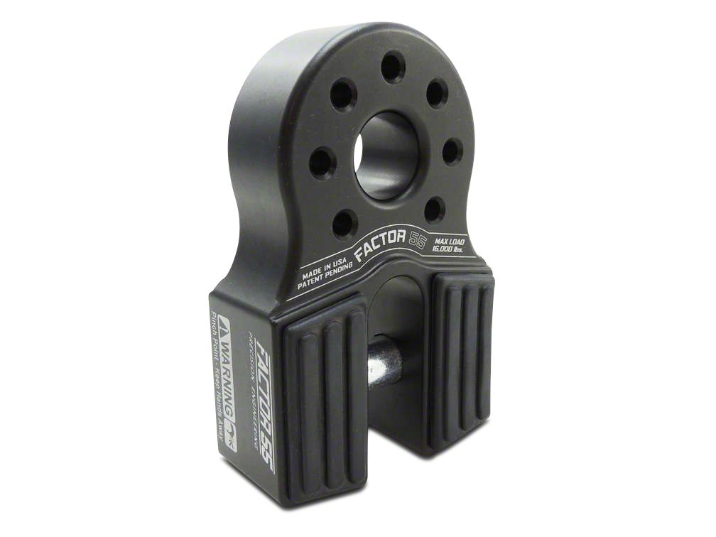 Excellence in Manufacturing. A proud American company who designs and makes its components 100% inside USA borders, Factor 55 precision machines the FlatLink out of 6000 series billet aluminum, which is used for US military vehicle parts. With a 16,000 lb. working load and 40,000 lb. failure point, this shackle mount has the basic burliness to stand up easily to the stresses of recoveries. The part features a gray powdercoat and comes with a 1-year limited warranty.