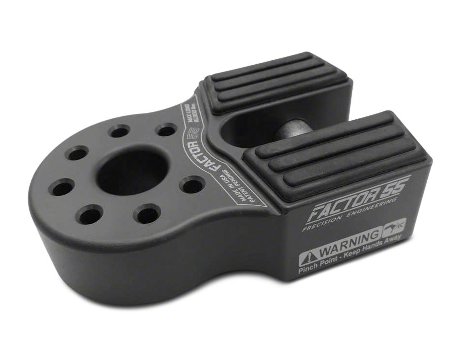 Get the Toughest Shackle Mount for Your Rig. The Factor 55 Flatlink can stand up to any recovery job, thanks to its maximum load rating of 16,000 pounds and an ultimate failure rating of 40,000 lb. In addition, the steel screw pin shackles help keep recovery strap loops secured in place. The Flatlink can be used with either steel cables or synthetic ropes without any splicing. When you’re all done, the Flatlink fold away to less than 1.75 inches thick.