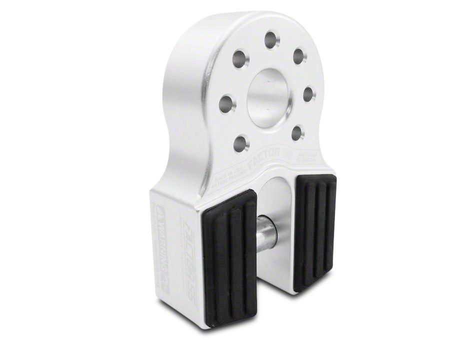 Hardy, Practical. Built from high quality 6000 series aluminum – originally designed to meet the strength standards of Army vehicle towing – the Factor 55 Silver FlatLink can hold 3/4" screw pin shackles and D-rings. Ultimate failure occurs only at 40,000 lbs or more. The double shear pin that secures the recovery line or strap is 5/8" in diameter and fastens with a snap ring for easy opening and closing. The component is covered by a 1-year limited warranty from the manufacturer.