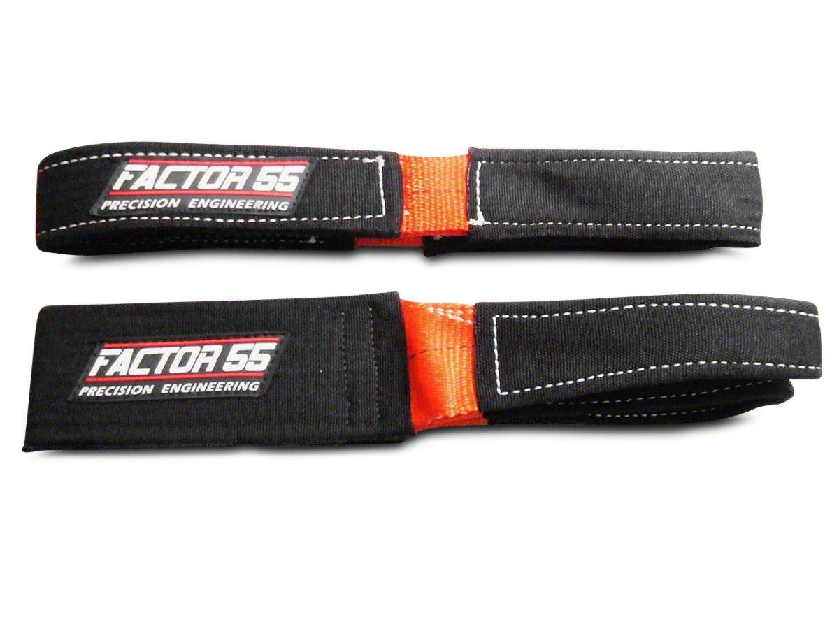 Heavy-Duty Strap. Factor 55's Short Strap III is unlike other recovery straps as it boasts increased versatility. Able to configure into 3 configurations (straight, basket, and choker) for maximum recovery power, this strap works in all recovery situations to give you the tailored help you need. The strap also minimizes twisting and rolling when wrapped around tubular shapes since it naturally lies flat. Made with a low-stretch webbing, this strap is incredibly reliable as it reduces recoil energy as well as component failure, so all of your recovery missions go just as planned.