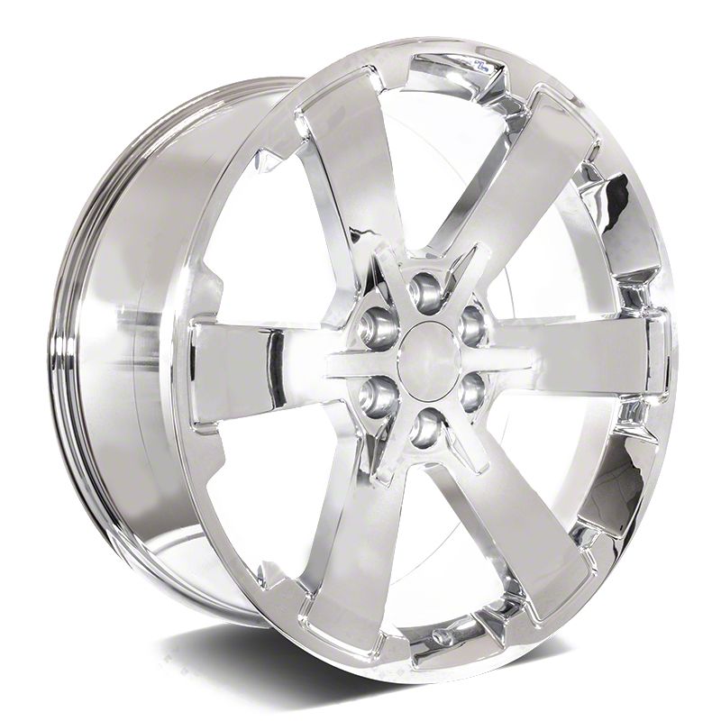 Application. This Factory Style Wheels Yukon Style Chrome 6-Lug Wheel; 24x10; 31mm Offset, with a backspace of 6.721 Inch, 170.8mm and bolt pattern of 6 x 139.7mm (6 x 5.5-Inch), is designed to enhance alignment and driving stability, ensuring a perfect fit with the vehicle model. Specifically designed to fit 2007-2013 Silverado 1500 models, this wheel's specifications contribute to a seamless alignment and stable driving experience by ensuring the wheel fits perfectly within the vehicle's wheel well, reducing the risk of rubbing issues and optimizing handling characteristics. Sold individually.