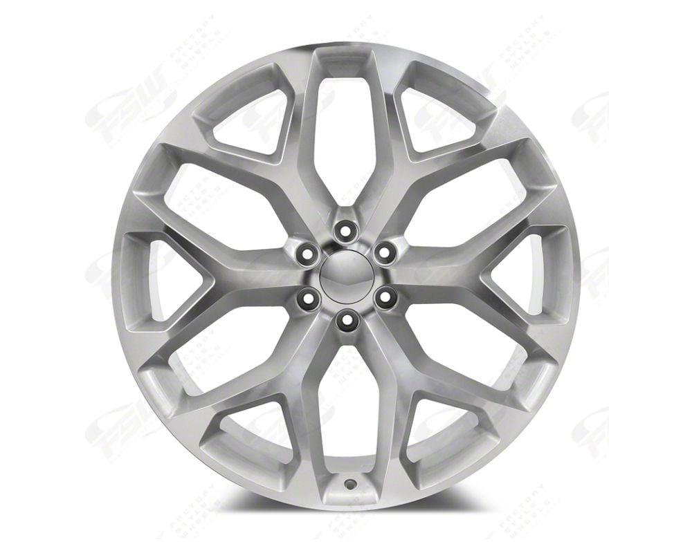 Application. This Factory Style Wheels Snowflake Style Silver Machined 6-Lug Wheel; 24x10; 31mm Offset with a backspace of 6.721 Inch, 170.8mm and bolt pattern of 6 x 139.7mm (6 x 5.5-Inch) ensures impeccable alignment and driving stability. It's designed to fit the 14-18 Silverado 1500 models, sold individually.