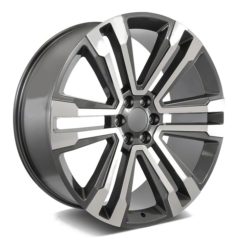 Factory Style Wheels SLT Style Gunmetal Machined 6-Lug Wheel; 22x9; 24mm Offset. The Factory Style Wheels SLT Style Gunmetal Machined 6-Lug Wheel offers a striking balance of style and refinement. Its unique design accentuates the vehicle's aesthetic, while the premium construction underscores its robust nature. This wheel is a perfect choice for those seeking both elegance and a strong visual statement.
