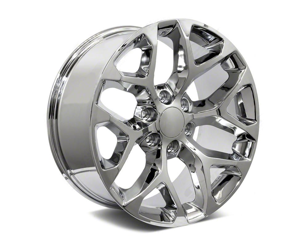 Application. This Factory Style Wheels Snowflake Style Chrome 6-Lug Wheel; 20x9; 30mm Offset is designed to fit 2019-2026 Silverado 1500 models. Sold individually.