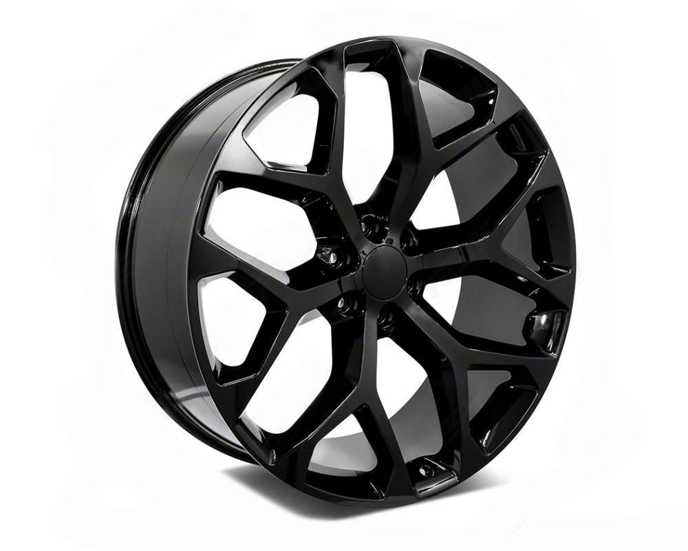 Application. This Factory Style Wheels Snowflake Style Gloss Black 6-Lug Wheel; 22x9; 24mm Offset with a backspace of 5.945 Inch, 151.1mm; and bolt pattern of 6 x 139.7mm (6 x 5.5-Inch), contributes to alignment, driving stability, and ensures a perfect fit with the vehicle model. Designed to fit the 2019-2026 Silverado 1500. Sold individually.