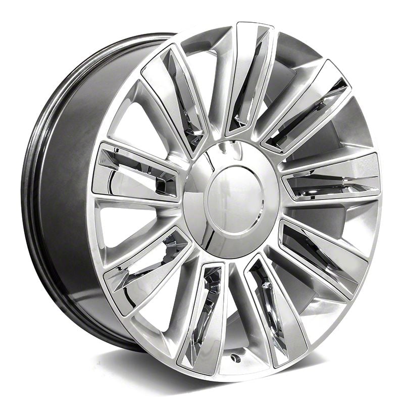 The 22x9 Factory Style Wheels Diamond Style Hyper Silver with Chrome Inserts 6-Lug Wheel underwent a thorough finishing process to make sure the wheel not only looks great, but that it can also handle the rigors of driving.