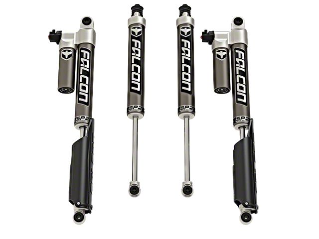 Comfort and Performance. Are you looking for a way to enhance your Ford F-250 Super Duty's performance? Look no further than the Falcon Shocks 0 to 2-Inch e-Tow/Haul Shock Leveling System. This system is designed to improve on-road comfort and off-road performance, while also providing enhanced dynamic roll control and low-speed damping.