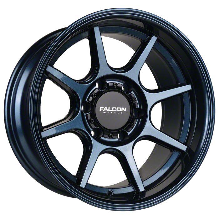 This 17x9 Falcon Wheels T8 Seeker Series Battle Blue 6-Lug Wheel; 17x9; -38mm Offset was thoroughly tested for an impressive finish that looks amazing and withstands the rigors of daily driving.