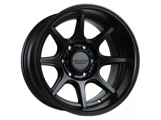 This 17x9 Falcon Wheels T8 Seeker Series Full Matte Black 6-Lug Wheel; 17x9; -12mm Offset is completed in a high-quality matte black finish that will make others green with envy. There is a durable clear coat that looks great and withstands the rigors of daily driving.