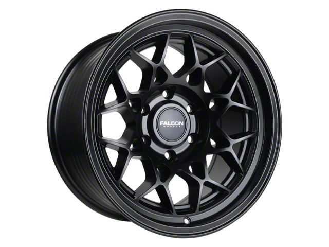 This 17x9 Falcon Wheels TX3 EVO Series Full Matte Black 6-Lug Wheel; 17x9; -12mm Offset is completed in a high-quality matte black finish that will make others green with envy. There is a durable clear coat that looks great and withstands the rigors of daily driving.