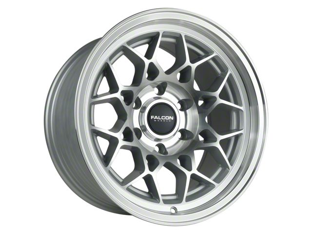 This 17x9 Falcon Wheels TX3 EVO Series Full Silver with Machined Face and Lip 6-Lug Wheel; 17x9; -12mm Offset is completed in a full silver finish with a machined face to make everyone green with envy. There is a durable clear coat that looks amazing and withstands the rigors of daily driving.