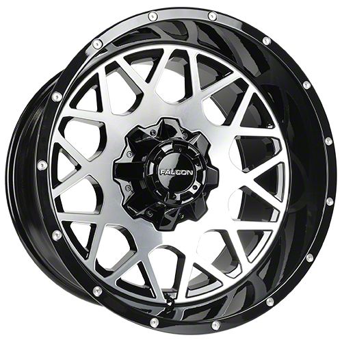 Falcon Wheels F3 Series Glossy Black Machined 6-Lug Wheel; 20x10; -24mm Offset: Redefine your vehicle's style with the Falcon Wheels F3 Series Glossy Black Machined 6-Lug Wheel. This wheel's elegant design and striking finish embody a blend of sophistication and boldness, perfectly complementing a wide array of vehicle aesthetics. Crafted from high-quality materials, it's a testament to durability and style.