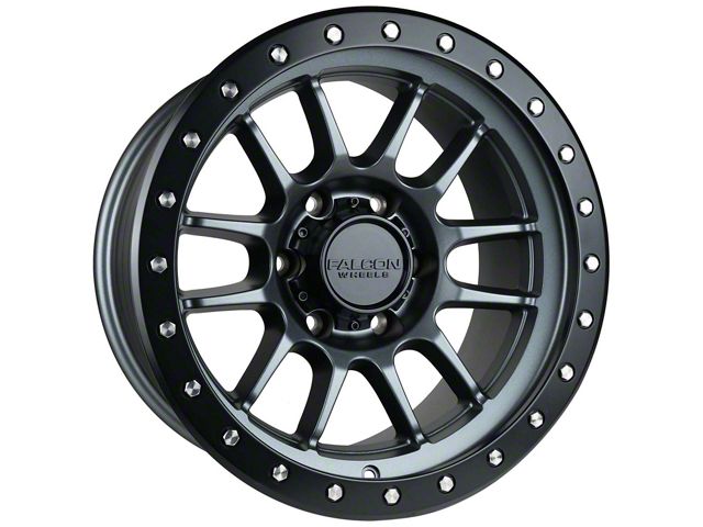 Falcon Wheels T7 Series Matte Gunmetal with Matte Black Ring 6-Lug Wheel; 17x9; -12mm Offset - Enhance your vehicle's style with the Falcon Wheels wheel. This wheel's distinctive design and finish complement your vehicle's aesthetics, making a bold statement. It's crafted to accentuate the unique character of your car, emphasizing a premium and robust appeal.