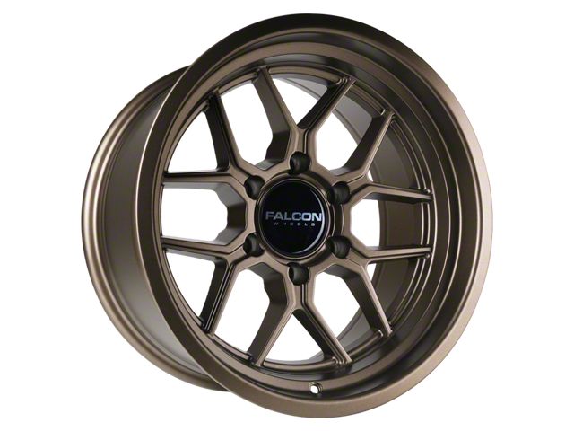 This 17x9 Falcon Wheels TX1 Apollo Series Full Matte Bronze 6-Lug Wheel; 17x9; -38mm Offset is completed in a high-quality bronze finish that will make others green with envy. There is a durable clear coat that looks great and withstands the rigors of daily driving.