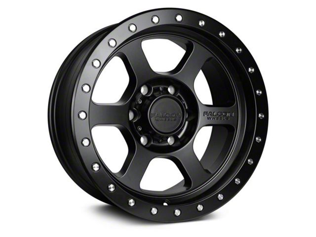 Falcon Wheels T1 Series Full Matte Black 6-Lug Wheel; 20x9; 0mm Offset offers a sleek and modern design that enhances the visual appeal of any vehicle. Crafted with attention to detail, this wheel merges aesthetic elegance with a robust build, making it a fitting choice for those seeking a blend of style and durability.