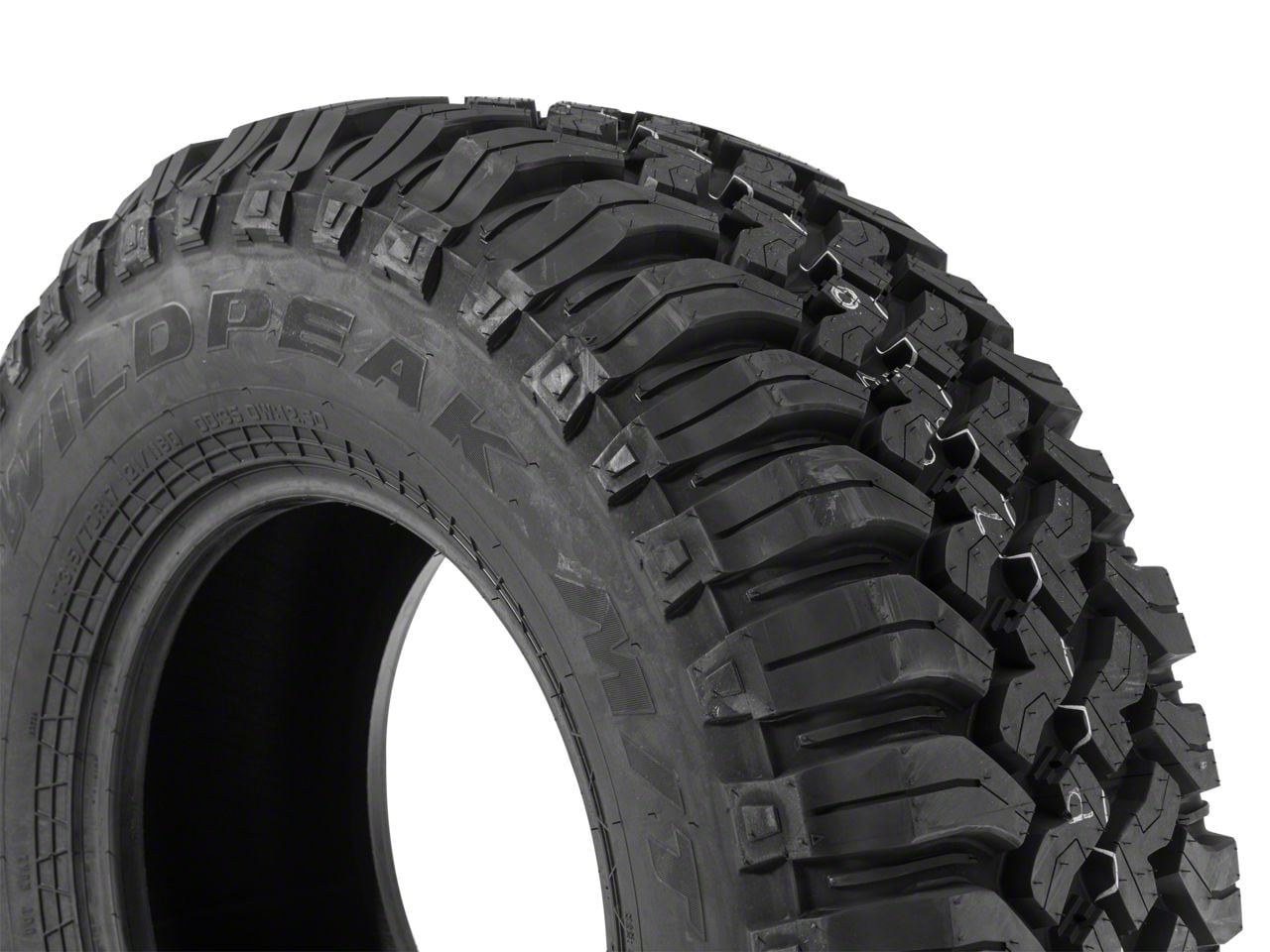 Built for the Trail. The Wildpeak M/T Tire is truly a tire made for the trail. It utilizes a distinctive variable three-pitch tread design to help your truck tackle the muddy trail. In addition, its durable proprietary 3-ply DURASPEC black sidewall is designed to withstand powerful impacts from hard trail objects.