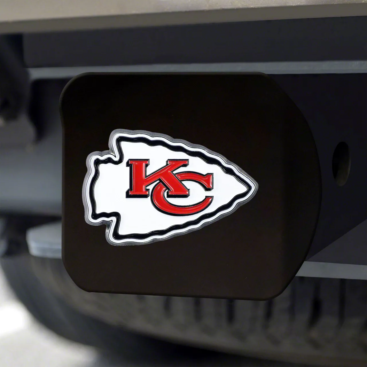 Vibrant Hitch Protection. Show your team spirit and protect your hitch in style with the Hitch Cover with Kansas City Chiefs Logo; Red. The centerpiece of this hitch cover is the officially licensed Kansas City Chiefs logo, boldly displayed in full color. This high-quality emblem showcases your team loyalty in a striking and stylish way. Beyond its aesthetic appeal, this hitch cover serves a practical purpose by protecting your hitch from dirt, debris, and rust.