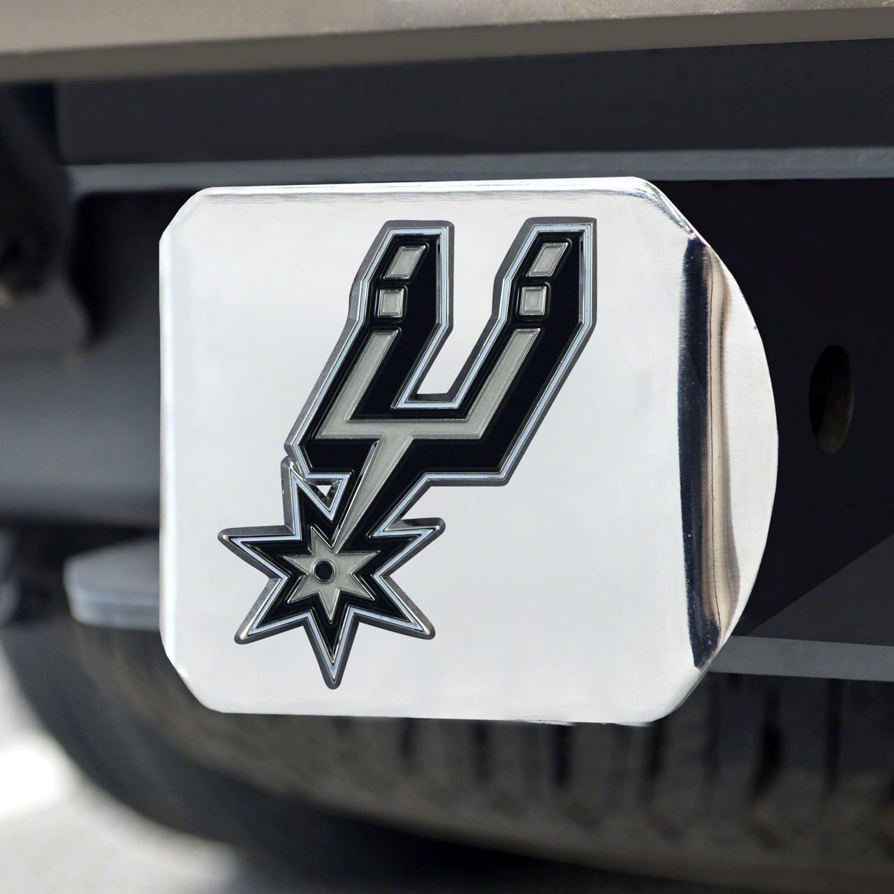 Description. Hitch Cover; Color Hitch Cover; Chrome; Nba; San Antonio Spurs; 3.4"X4"
