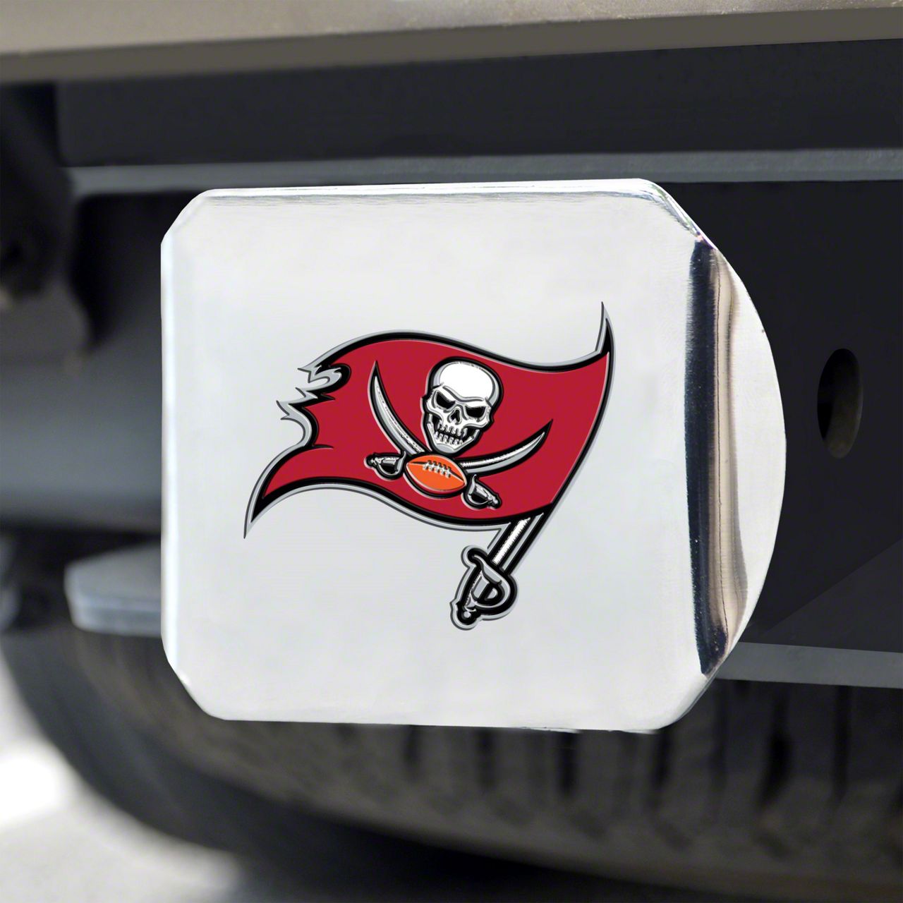 Description. Automotive Accessory; Color Hitch Cover; Chrome; Nfl; Tampa Bay Buccaneers ; 3.4"X4"