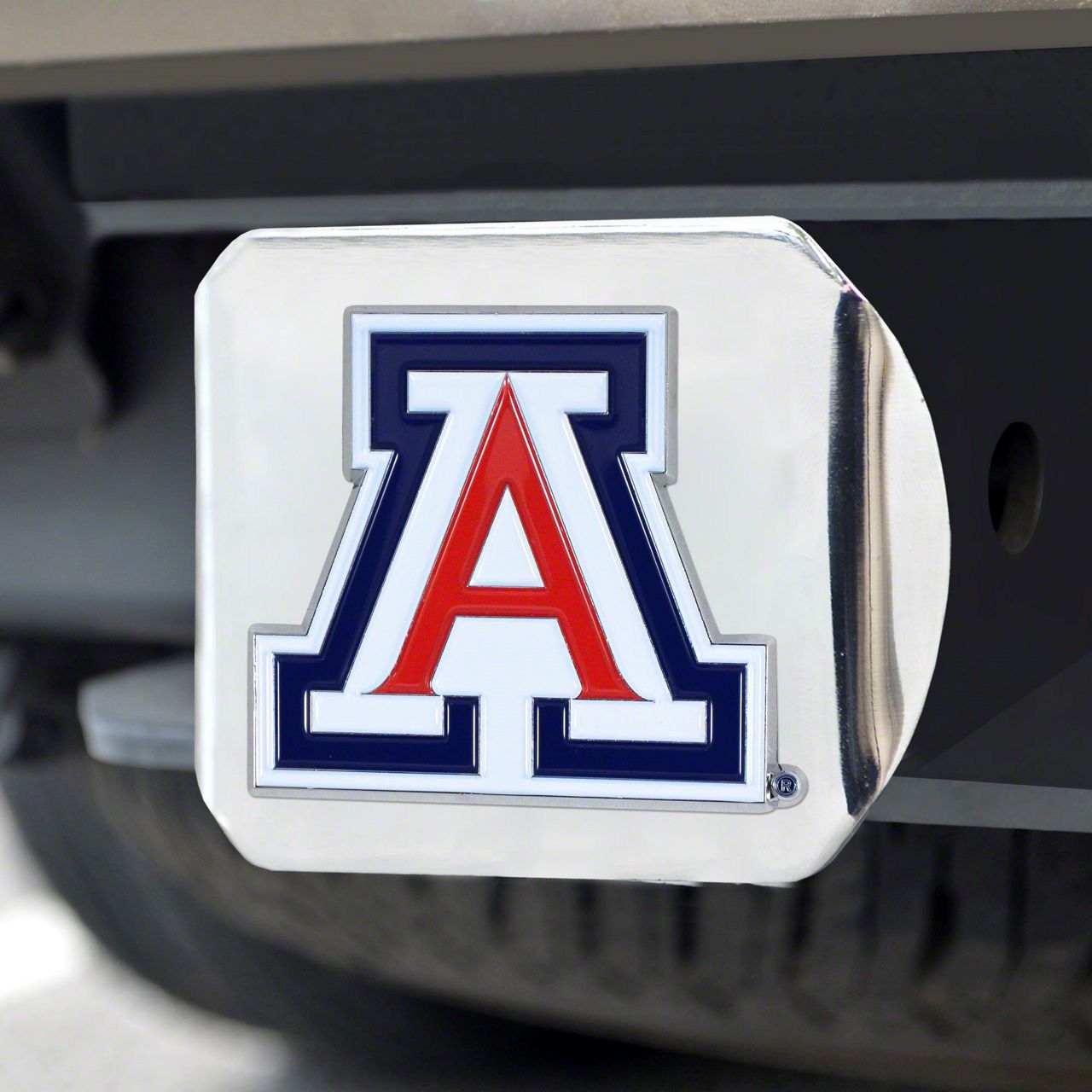 Description. Hitch Cover; Color Hitch Cover; Chrome; University Of Arizona; 3.4"X4"