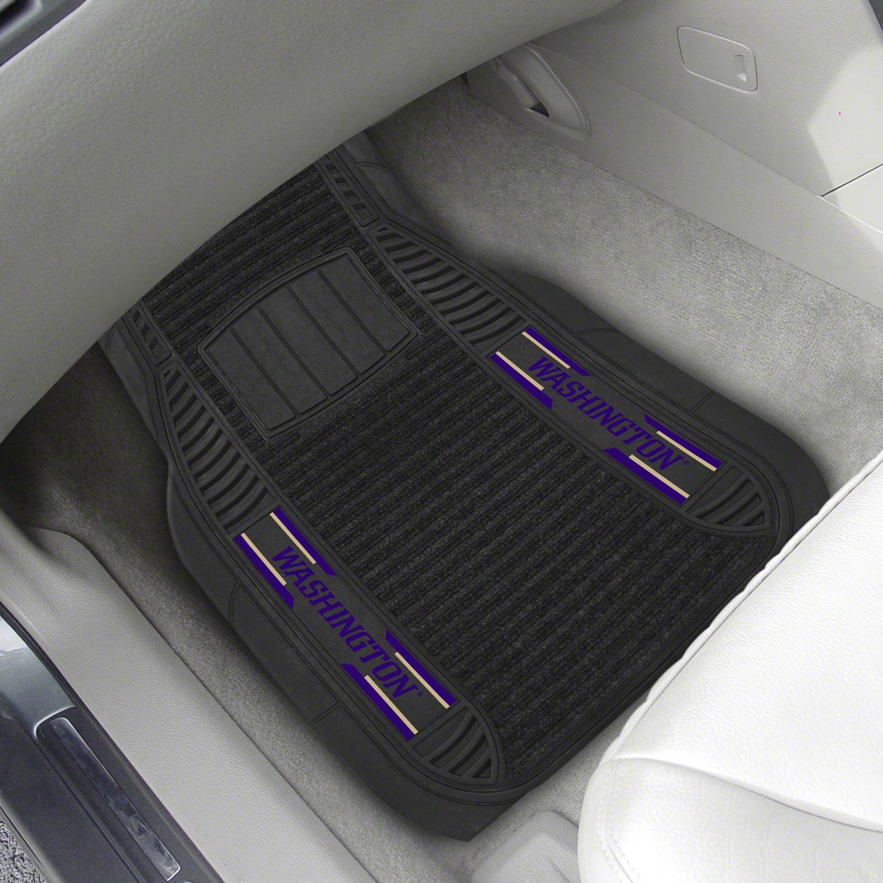 Description. Front Car Mats; 2-Pc Deluxe Car Mat Set; University Of Washington; 21"X27"