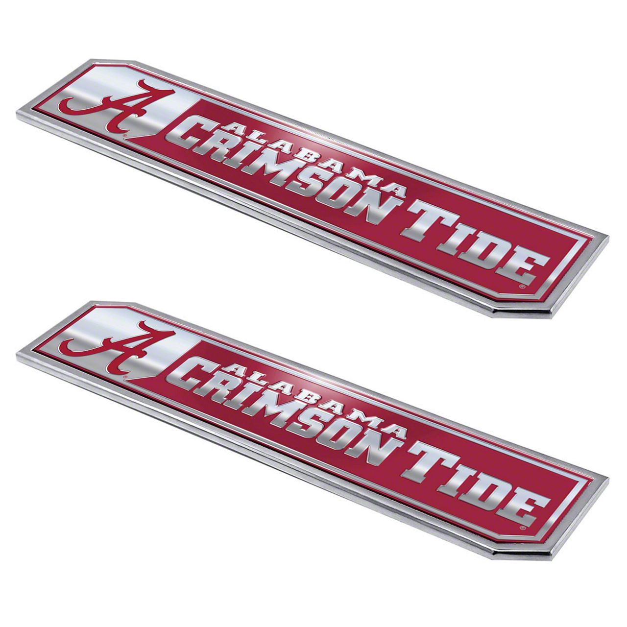 Application. The University of Alabama Embossed Emblems; Crimson is a product with universal fitment with some adaptation needed.